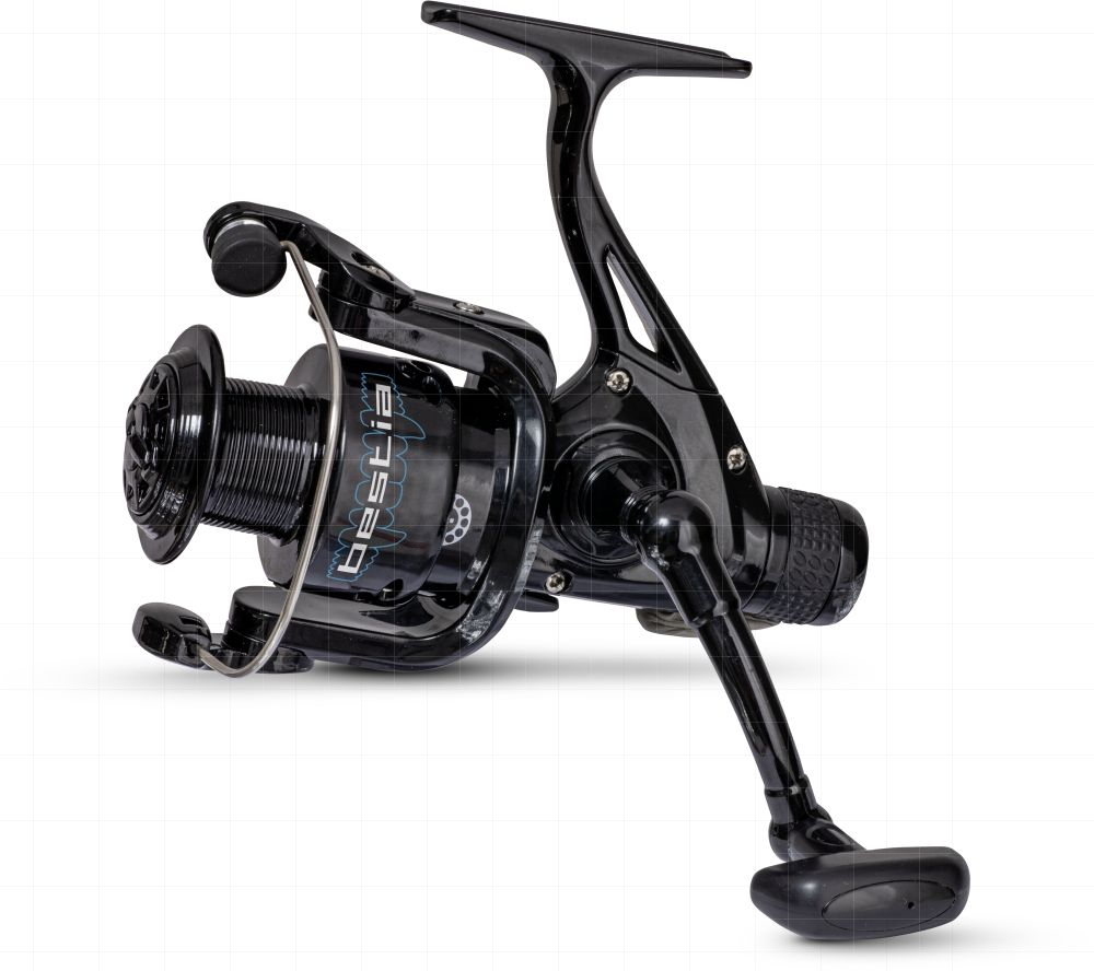 Rybářský naviják feederový, kaprový a přívlačový, zadní brzda, velikost cívky: 60, převodový poměr 4,9:1,